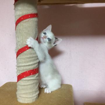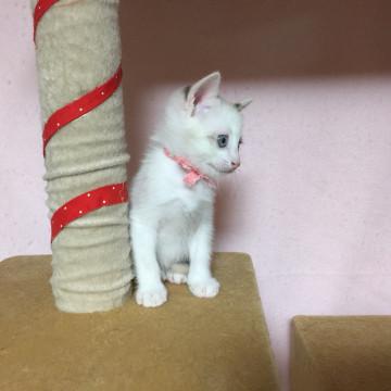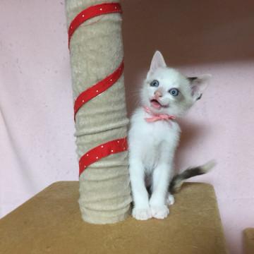 ラグドール風の毛色です。兄妹で全く毛色が違います。子猫らしく元気に過ごしています。従兄妹の咲翔くんや清玄くんと仲良く過ごし猫社会を学んでいます。