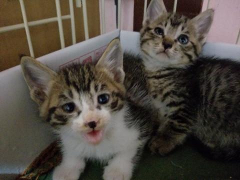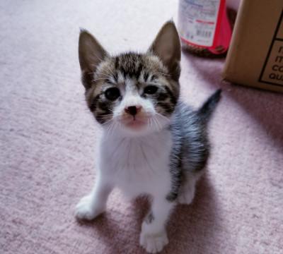 キジ白 1.5ヶ月くらい まっすぐなしっぽ