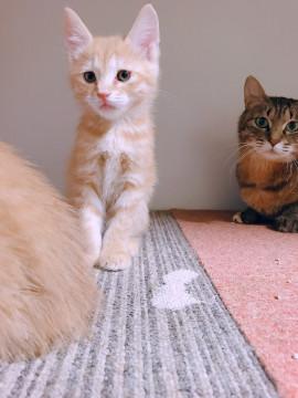 元気ですが、どちらかというとおっとりしているかもしれません(子猫なので今後どう変わるかは分かりません)