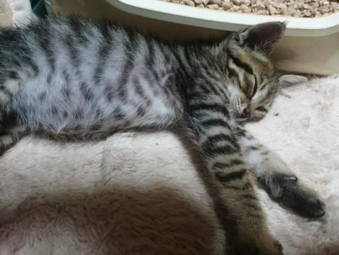 親猫とはぐれたようで地域の方が保護してくださいました。保護当時はとても弱っていたようですが、保護主さまにご飯をもらって回復したとのことです。