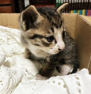 保護して間もないため、また、体も小さいため、7月下旬頃にエイズ白血病の検査・ワクチン接種を行う予定です。