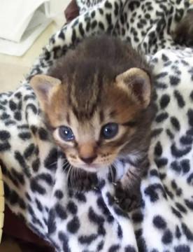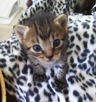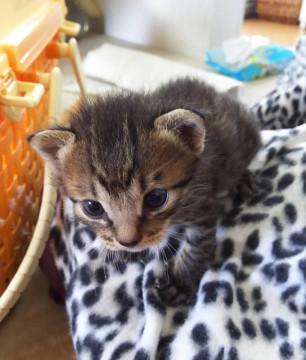 生後2週間くらいのキジトラの男の子です。3〜4時間おきにミルクを飲んでいます。
