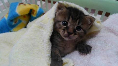 生後すぐに田んぼに落ちているところをレスキューされ、動物病院経由で私どものところに来ました。