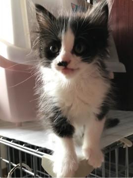 大雨洪水警報が出る直前に兄妹4匹で公園に遺棄されました。草の茂みで兄妹身を寄せ合って生き延びたようですが、発見時、白黒の子は顔の左側をカラスにつつかれ流血、死にかけていました。
