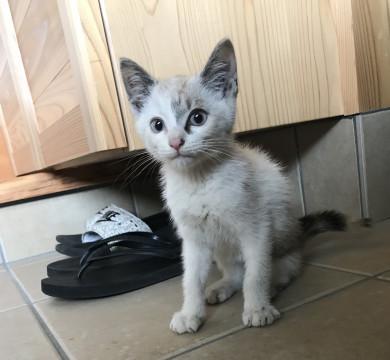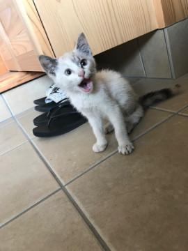 わたしの友人が国道で外人さんが子猫を抱えて歩いているところを不思議に思い声をかけたら子猫が1匹でいてついてくるとの事でした。