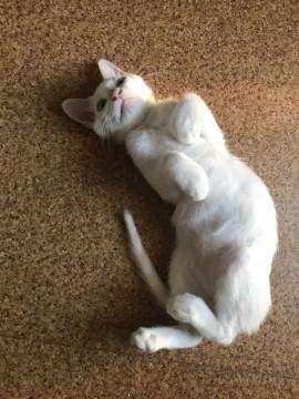 初めは人を怖がっていましたが、今ではゴロゴロ甘えてきます。とても食いしん坊でヤンチャです。
