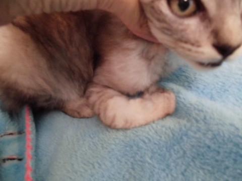 現在右前足に麻痺ありますが、保護当時よりは改善してきています。特に処置の必要はありません。また高いところに登るのは苦手なようですが、他は日常生活に問題ありません。