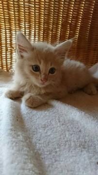 もう1匹は先日新しい里親さんの元へ行きました。新しい里親さんはこのミルクティー色の子が欲しいと言ってたのですが、里親さんは小学生へ来年上がる子がいたので、子供とあそぶとかは、性格が向いてないため、もう1匹の子は