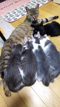 6匹の赤ちゃんを産み、おっぱいで元気に育てました。その間、預かりをしてくれた協力者が、母猫はそのままウチの子にしたいと申し出頂き、子猫ちゃんたちだけの募集になります。