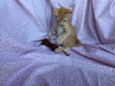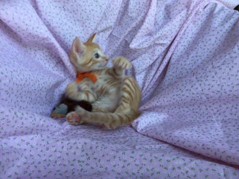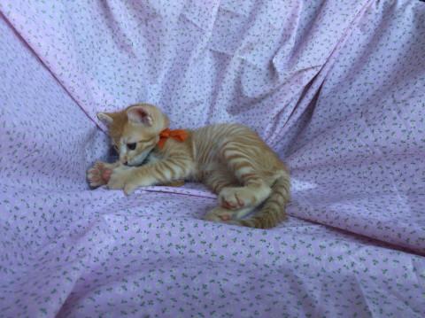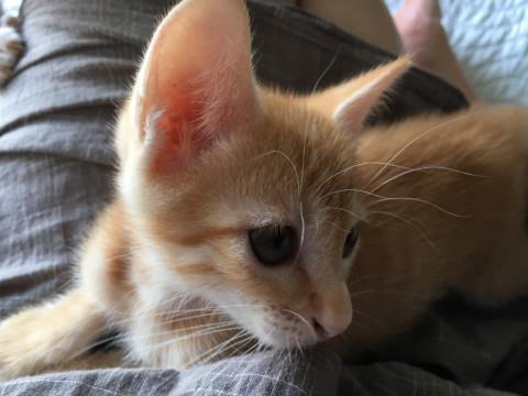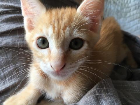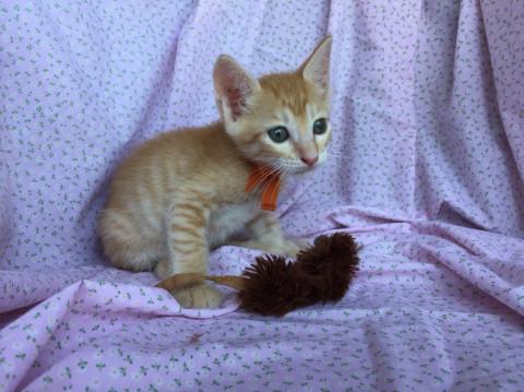 可愛い茶トラの男の子。甘えん坊で出遅れるタイプです。成猫・仔猫ともに仲良く生活をしております。