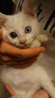 右目が黄色、左目が青色のオッドアイ。