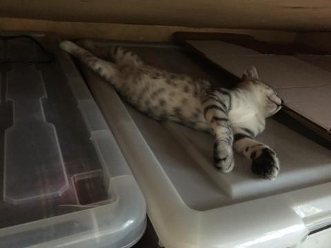 人間が大好きで、寝るときは体をひっつけて一緒に寝てくれます。人間との暮らしに安心しきっているようで、お腹を上に向けて寝ています。