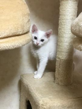 ミン君(白)♂ 仔猫にしては穏やかです。もちろんわんぱくな面もありますが、とっても飼い易い子です。