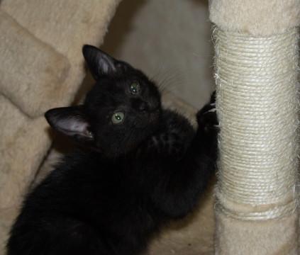 ユンちゃん(黒)♀ ミン君ととっても仲良しでにゃんプロしたり一緒に寝たり毛繕いしたりしています。ユンちゃんも穏やかで手のかからないい飼い易い子です。