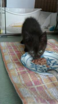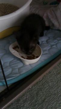 あまり良く写っていませんが 1枚は缶詰のごはんとカリカリごはんを食べているところです。