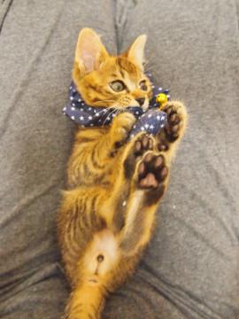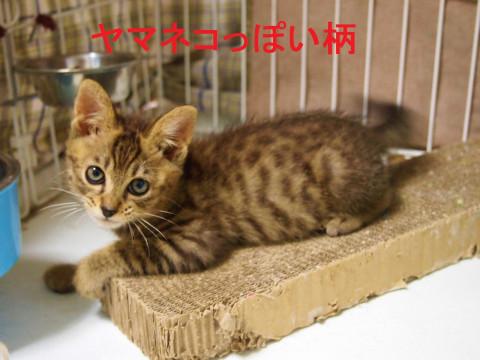 【毛 柄】明るいキジトラ。一部斑点模様があり、ヤマネコ風の見た目です(ベンガルっぽい)