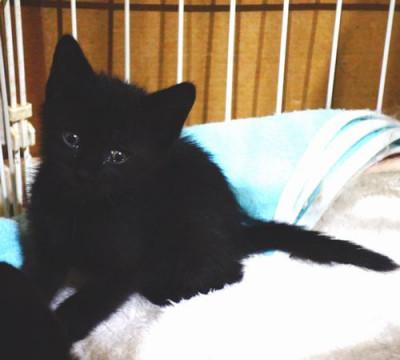 元気いっぱいの黒猫の男の子。