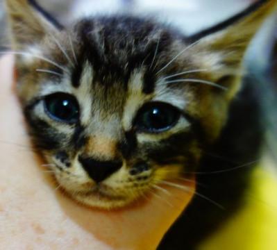 後輩ボランティアさんが説得して、メス猫の手術が出来るようになったのですが、もう子猫が産まれていたそうで、生後1か月弱の小さな子猫が