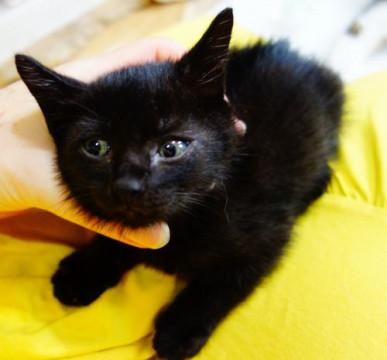 後輩ボランティアさんが説得して、メス猫の手術が出来るようになったのですが、もう子猫が産まれていたそうで、生後1か月弱の小さな子猫が