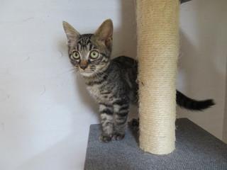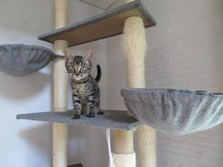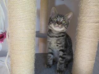 きょうだいの中で一番懐いています。おとなしいのかと思ったら、さにあらん。ケージから出ると、きょうだいのみぃちゃんさぁちゃんと追いかけっこをし、やんちゃぶりを発揮しています。「ボク元気だよ」って誇らしそうに走り回っています。
