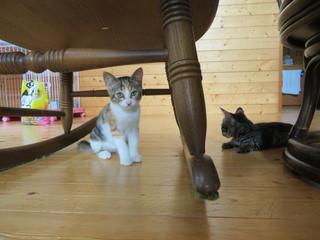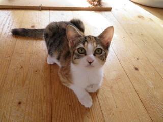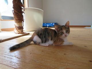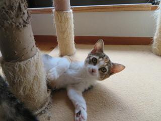 おっとりとして、ちっちゃな三毛柄のみぃちゃんです。だんだんに懐いてきました。ケージから出て遊んでいても、抱っこができるようになりました。きょうだいのさぁちゃん・きぃくんと仲良く遊あんでいます。