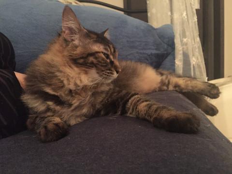 他の猫を押しのけてでも撫でて撫でて〜〜と自己主張が激しく、撫でてもらうとまたソファでにゃんびりしています。