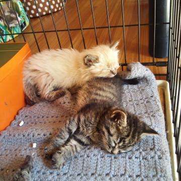 市内にあるペット不可の住宅の敷地内で餌をあげている住人がおり、野良猫が増えていました。その中で子猫が生まれているとの通報があり、かけつけるとこの子たちがいたため、保護しました。