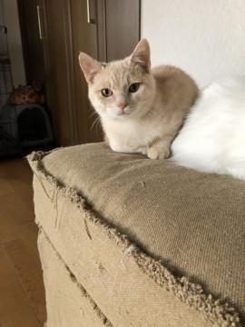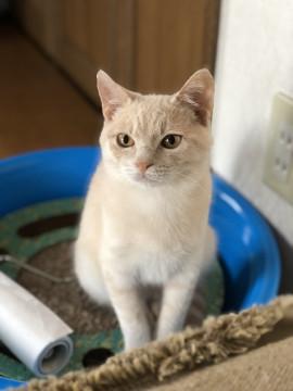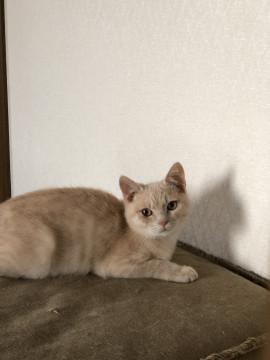 クリーム色でひかりの具合によってははピンクのようなとても柔らかいお色の茶トラちゃんです(^^
