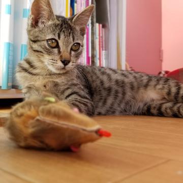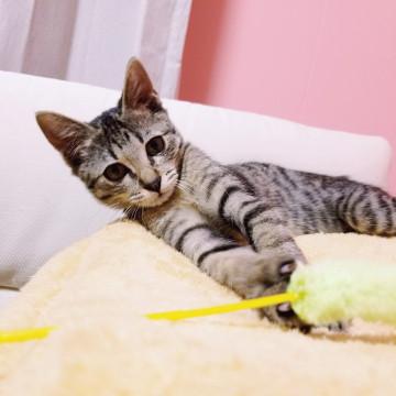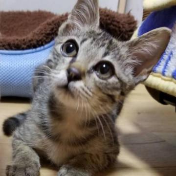 生後2か月半ほどの、かわいいキジトラの男の子です。