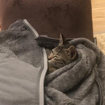 保護当初はとても臆病で、慣れるまでに多少時間がかかりましたが、今では人も猫ちゃんも大好きです。