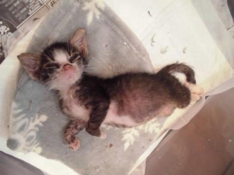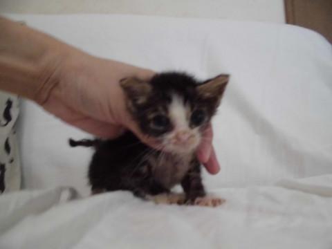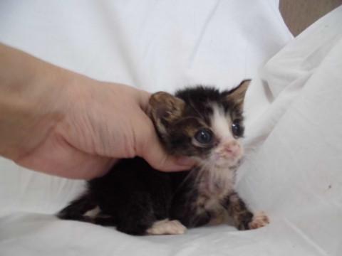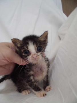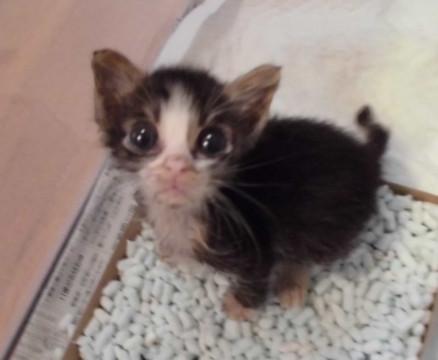 可愛いキジ白えりん君です。手袋靴下とももんがのような大きな大きなこぼれそうなお目目がとってもキュートです。かなり小柄ですが、ぼちぼち自力で食べだし食欲は旺盛なのでこれからしっかり成長してくれると思います。まだ小さいので性格ははっきりわかりませんが、ミルクから育てているので大変人懐こくなります。