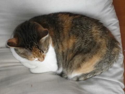 小柄。全体的に薄めで淡い色調の縞三毛