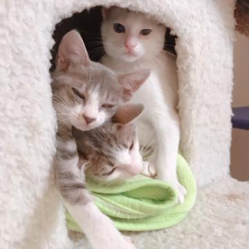 その中でも、二コは特に酷い風邪をひいていて、身体中ノミに支配され貧血状態でした。両目は塞がれ、目薬の度に目は癒着し、開けると膿が吹き出し、酷い状態でした。ここまで回復したニコを褒めてあげたいです。とても頑張りました。目を開けてニコって笑って欲しくてニコと名付けました。