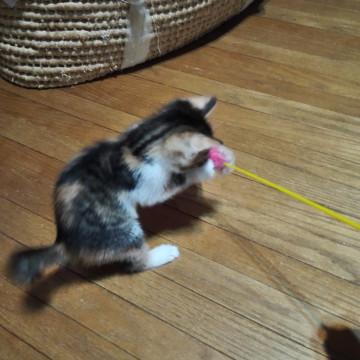無邪気で活発。よくしゃべり膝にものってきます。人にも猫にもよく馴れています。