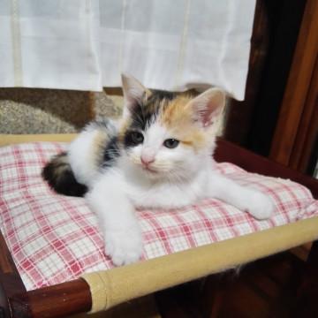 白っぽい三毛猫ちゃんです。