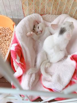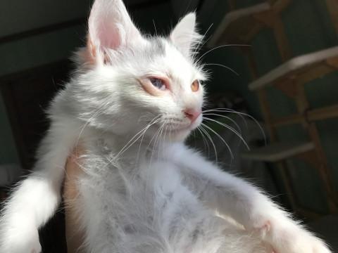 抱くとクネっと柔らかく気持ちよくて癒されます。瞳はオッドアイでブルーの方は治療中です。
