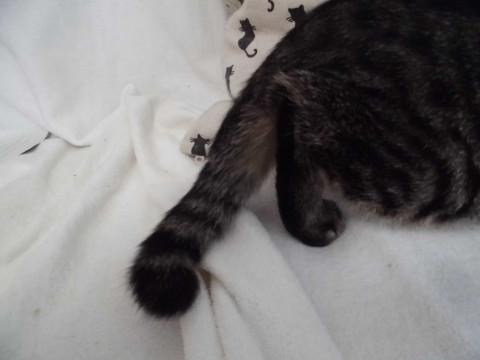 かわいい、丸顔のキジ虎、らんぽ君です。しっぽがたぬきのようで、根元が折れている独特な鍵尻尾です。性格は大変人懐こくゴロスリが止まりません。