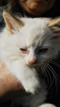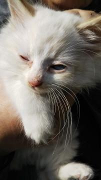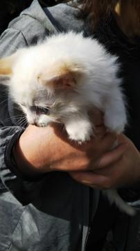 納屋で野良猫が産んだか、連れてきたかは、わかりませんが、鳴き声で見つける事ができました まだ生後間もない為室内で生活しています。