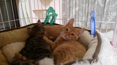 一緒に保護した茶トラおすととても仲良しなので兄妹二匹一緒に飼っていただける方を募ります。
