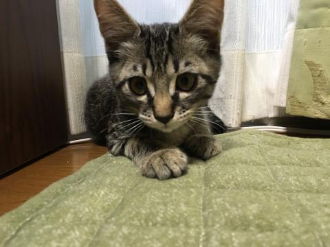 すごく甘えん坊でやんちゃで少しずつ我が家に慣れてきて、部屋の中を毎日探索しています。