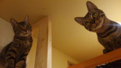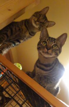 一匹はスリスリゴロゴロの甘えん坊、一匹はシャイです。