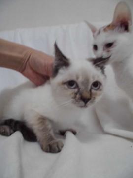 かわいいシャム系ミックスのりりあんちゃんです。とても綺麗にポイントがでていてコロコロとした体型も可愛らしく、きれいなペールブルーの瞳です。性格は大変ビビりで、まだケージから出すと隠れてしまいますが、しつこく撫でるとゴロゴロ言ってくれますし、威嚇などはありません。