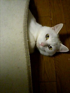 明るく天真爛漫な全身真っ白メス 仮称)ここみちゃん 推定3歳位、体重3kg。 初めての方にも飼いやすい従順な猫です。人間好きで、ベタベタ人懐っこい子です。いつも人と一緒にいたいタイプの子で、お話好きなので、お返事もする子です。お利口さんでおトイレ失敗なし。広いおでこと、一文字の口元、かわいい鳴き声がチャームポイント。遊び好きな人間でいうと「きゃぴきゃぴした性格」の女の子です。