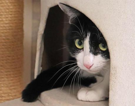 白黒八割れ、まん丸のお目目。短めで太く曲がった黒い尻尾。仔犬のぬいぐるみ、みたいな男の子です。可愛い声で鳴き名前を呼ぶとお返事をします。とってもゴロスリの構ってちゃん。お出迎えや添い寝もしてくれます。抱っこや遊びが大好き。ごろんと横になって撫でてと真っ白なお腹も見せてくれます。お留守番も出来て攻撃性も無く、とても温厚な性格です。