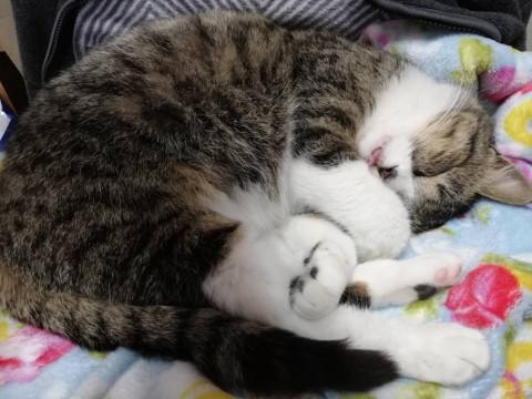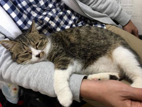 人に懐いていて抱っこをずっとされています。抱っこされたりくっつきながら寝るのが大好きです。顔を見上げて目を合わせてとてもかわいいです。毛質がふわふわ柔らかいです。穏やか優しい性格です。にゃーとないて返事します。寝顔が可愛くて、舌を出して寝てたり、膝枕して寝たりしています。癒されます。