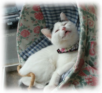 ひとなつっこく、すぐにヒザにはいりたがる子です。