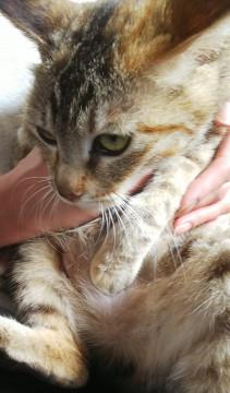 ベランダで出産しているのを発見した方が、自室内に保護をして下さいましたので、とても綺麗で元気に子育て中です。とても可愛い母猫ですので、里親様を募集させて頂く事にしました。保護主様には馴れていますが、誰でも平気になる様に、人馴れをさせ、躾を致します。