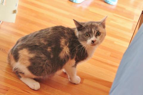 ご近所の高齢者の方からの依頼です。三毛の母猫と共に現われ、母猫だけがいなくなってしまったので子猫を保護しました。