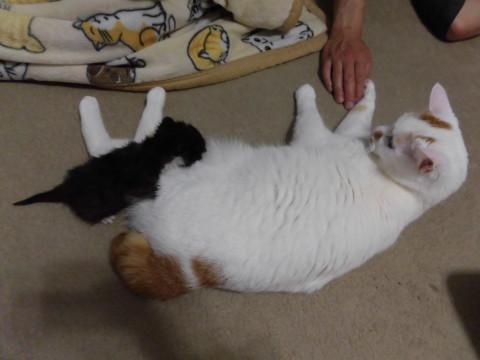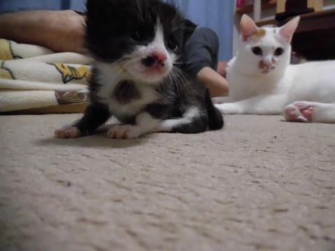 お母さん猫に直前までしっかり育てられたようで、猫も人も怖がりません。