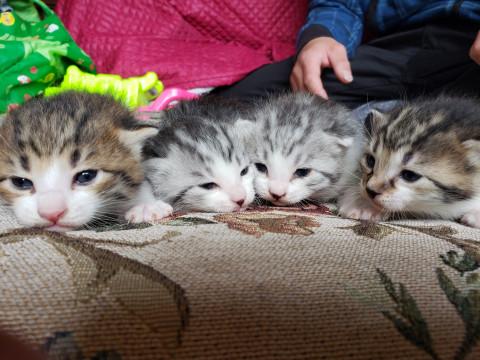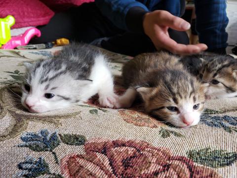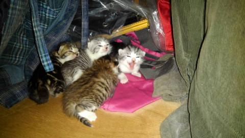 まだ母猫が隠している状態なのでちゃんと手に取って見られない為、詳しくは不明。元気に泣いており食欲もあるようです。